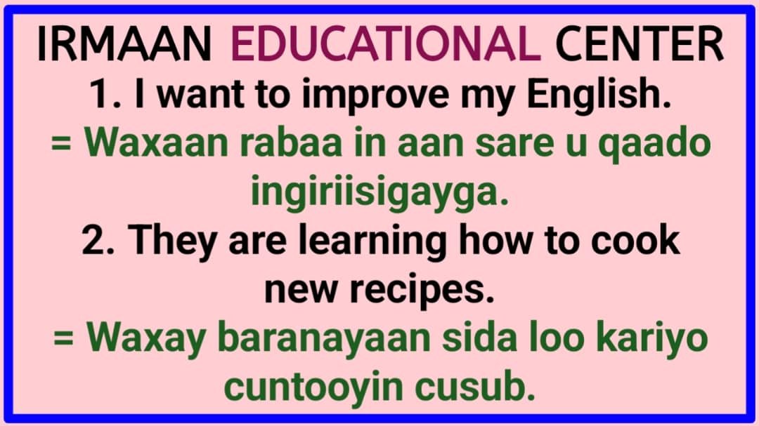 = Waxaan u baahanahay in aan barto erayo badan oo ingiriisi ah.